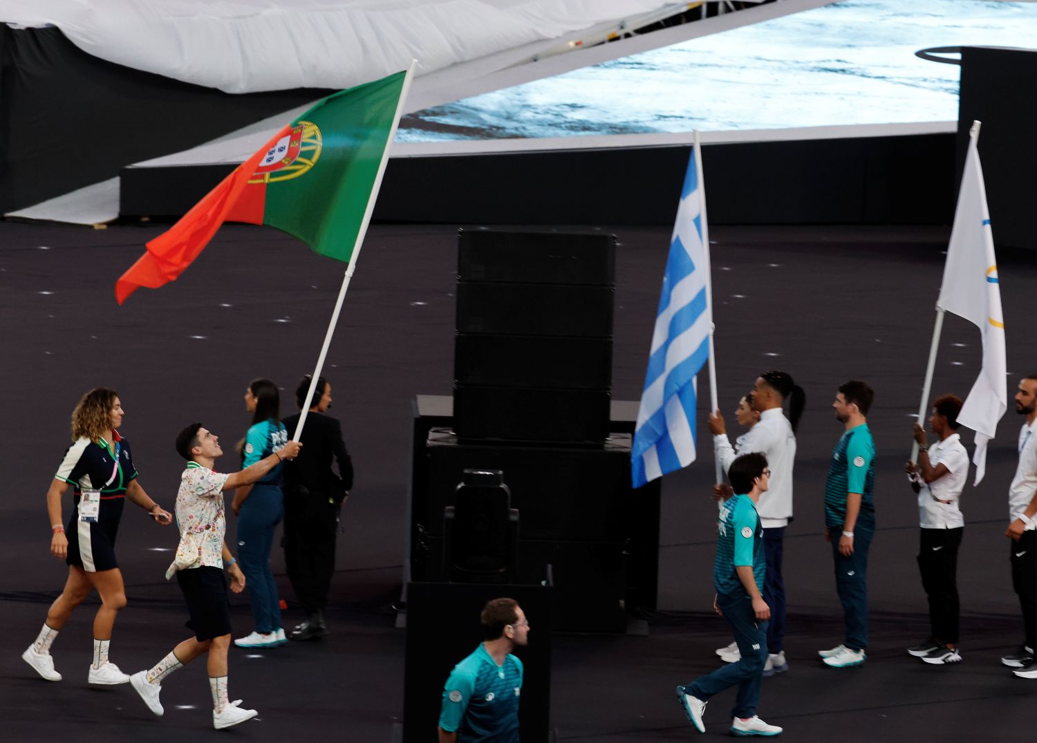 20h15 - Entrada dos atletas e parada das bandeiras – duração prevista 36 minutos. Os porta-bandeiras de cada país entram no estádio. Patrícia Sampaio e Iúri Leitão levarão a bandeira de Portugal. Após a entrada das 205 bandeiras, surgem os atletas que se juntam à parada.