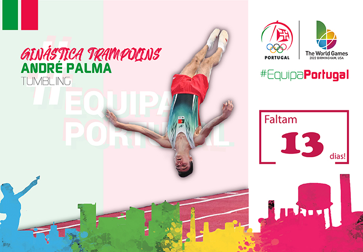 André Palma chega aos Jogos Mundiais com os objetivos bem definidos: conseguir o acesso à final da prova de tumbling masculino e alcançar a sua melhor pontuação pessoal. Aos 19 anos, o ginasta português conta já com um 3.º lugar por equipas no Campeonato da Europa em 2021 e na prova deste ano foi 14.º classificado. O que gosta mais no tumbling é da adrenalina durante os saltos, apesar de não apreciar fazer piruetas a meio da sequência de saltos. Os seus ídolos e fontes de inspiração são dois colegas de modalidade – Vadim Afanasev e Elliott Browne – mas André Palma tem outros interesses para além da ginástica: gosta de sair com os amigos e jogar videojogos e até já criou um videojogo com um amigo.