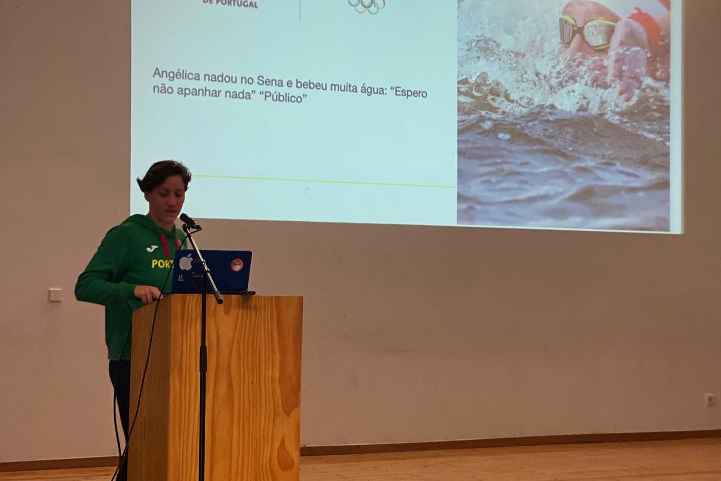 A sessão teve início com a intervenção do diretor do agrupamento, Paulo Ferreira, e integrou-se no âmbito do Plano de Inovação “Educação nos Valores Olímpicos”, desenvolvido em parceria com o Programa de Educação Olímpica do Comité Olímpico de Portugal. Angélica André partilhou o seu percurso pessoal, académico e desportivo, desde a infância até à atualidade, destacando o processo de formação enquanto atleta de alto rendimento e a importância da Natação e do sonho Olímpico como pilares do seu trajeto. A nadadora representou Portugal nos Jogos Olímpicos de Tóquio 2020 e Paris 2024.