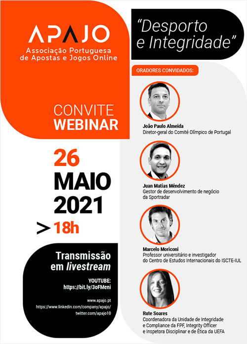 A APAJO, Associação Portuguesa de Apostas e Jogo, organiza no próximo dia 26 de maio a primeira sessão de um ciclo de conversas on-line sobre o setor do jogo, das apostas e das áreas interligadas.