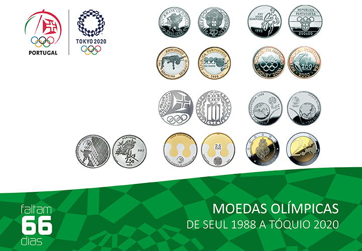 Desde os Jogos Olímpicos Seul 1988 que a Imprensa Nacional Casa da Moeda emite moedas sob o tema Jogos Olímpicos. A primeira teve o valor facial de 250 escudos e foi da autoria de Hélder Batista.