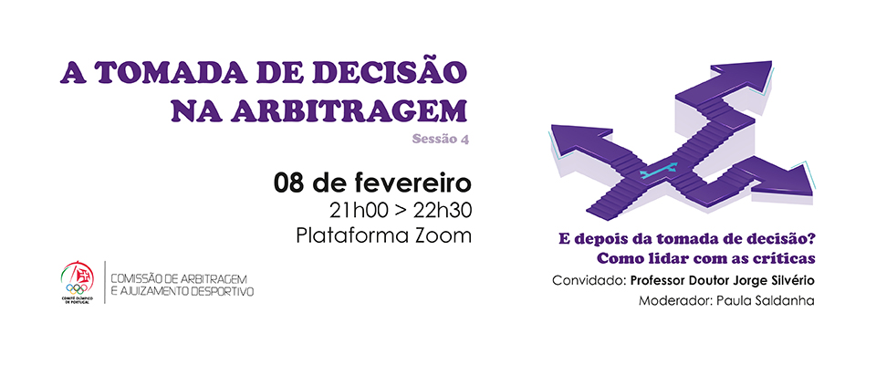 A Comissão de Arbitragem e Ajuizamento (CAAD) do Comité Olímpico de Portugal retoma o ciclo de conversas on-line sobre o processo de tomada de decisão na arbitragem.