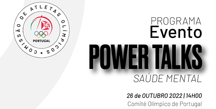 A Comissão de Atletas Olímpicos (CAO) realiza no dia 26 de outubro, na sede do Comité Olímpico de Portugal (COP), a primeira sessão dos eventos Power Talks, esta dedicada à Saúde Mental.