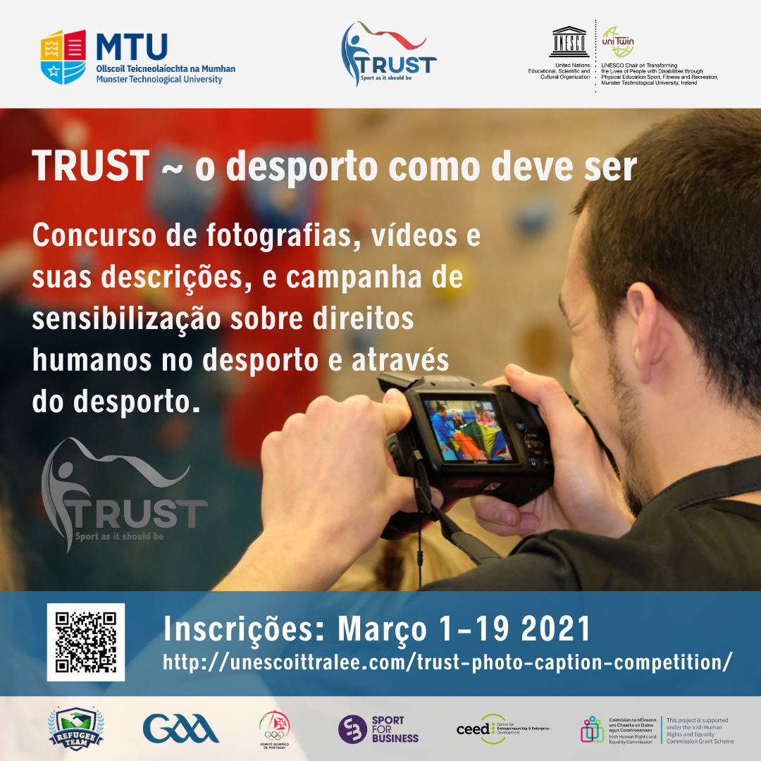 A cátedra UNESCO, em conjunto com o projeto TRUST, do qual o Comité Olímpico de Portugal é parceiro, está a dinamizar um concurso de fotografia relacionada com o desporto, na sua vertente de diversidade e inclusão com o objetivo de inspirar empreendedores, líderes e outros agentes desportivos a salvaguardar, promover e fazer avançar os direitos humanos através do desporto nas comunidades.