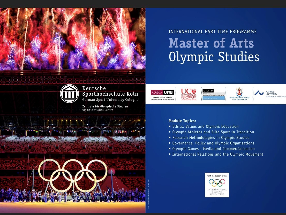 O M.A. Olympic Studies é um programa de mestrado totalmente credenciado que oferece uma abordagem multi e interdisciplinar aos Estudos Olímpicos, incluindo conteúdos sobre os diversos aspetos do Movimento Olímpico relacionados com os Valores Olímpicos.