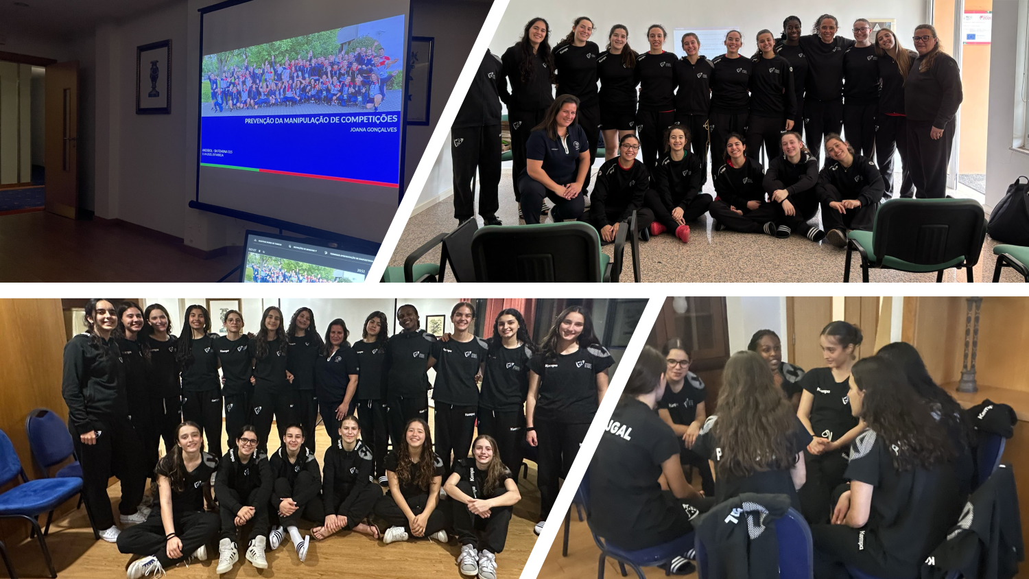 Além do enquadramento teórico foram promovidas dinâmicas de grupo e análise de casos práticos, com o objetivo de reforçar o entendimento e a capacidade de resposta das atletas perante potenciais situações de risco.