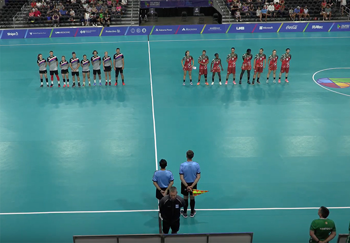 Portugal terminou a perder o primeiro período (4-6), tendo recuperado no segundo com uma vantagem de seis golos marcados e três sofridos. No terceiro período voltou a segurar a vantagem colocando-se à frente com cinco golos marcados e dois sofridos, para o quatro período fechar com a classificação final que dá vantagem a Portugal por três golos: 16-13. Isabel Santos, Isabel Almeida e Tiago Luz foram os jogadores portugueses com a pontaria mais afinada, com três lançamentos certeiros para cada um.