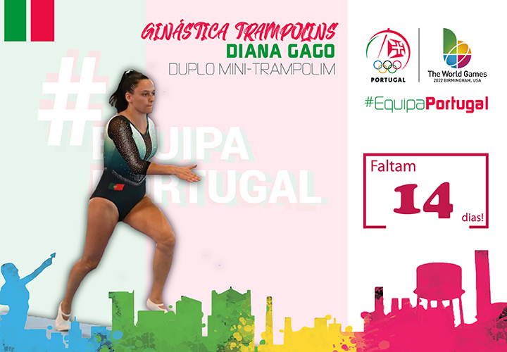 Diana Gago será a representante portuguesa na prova de duplo mini-trampolim feminino nos Jogos Mundiais. Aos 22 anos, elege como resultado de referência o 3.º lugar no Campeonato da Europa da disciplina, já este ano. Para Birmingham espera realizar uma boa prova que também lhe permita lutar por um lugar no pódio.