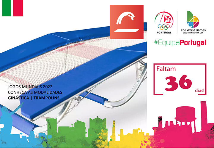 A Ginástica de Trampolins integra, no programa dos Jogos Mundiais, as provas de duplo mini-trampolim e de tumbling.