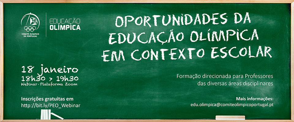 A sessão decorre na plataforma zoom, no dia 18 de janeiro, segunda-feira, entre as 18h30 e as 19h30. A inscrição é gratuita mas necessária e pode ser já garantida aqui . A iniciativa vai ser conduzida por Rita Nunes, Diretora do Departamento de Estudos e Projetos do COP e Joaquim Videira, responsável pelo Programa de Educação Olímpica do COP.