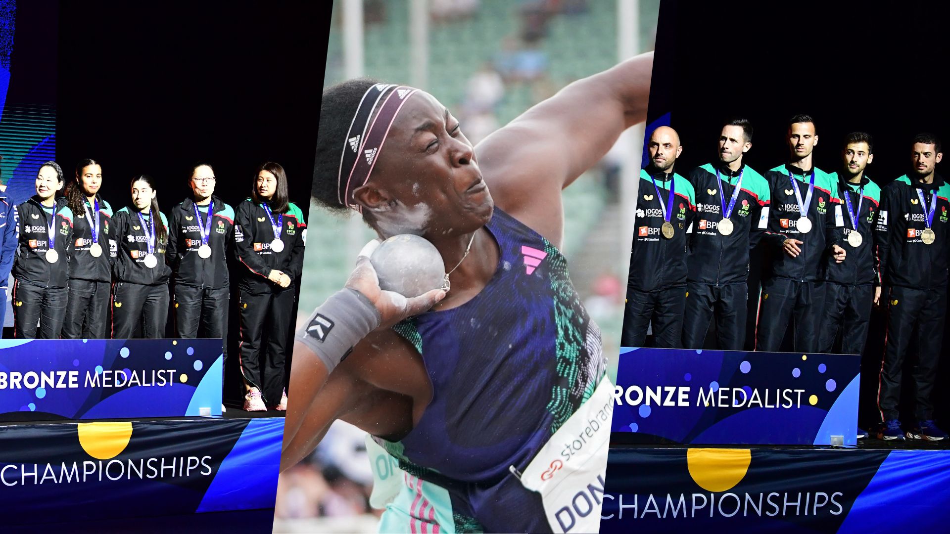 Três pódios para a Equipa Portugal este fim-de-semana, conquistados entre Malmö, na Suécia, e Eugene, nos Estados Unidos - todos premiados com medalhas de bronze. Os primeiros dois pertencem às equipas feminina e masculina de Ténis de Mesa, ambas classificadas no 3.º posto no Campeonato da Europa de equipas, o último foi responsabilidade de Auriol Dongmo, também 3.ª no lançamento do peso, na etapa final da Diamond League.