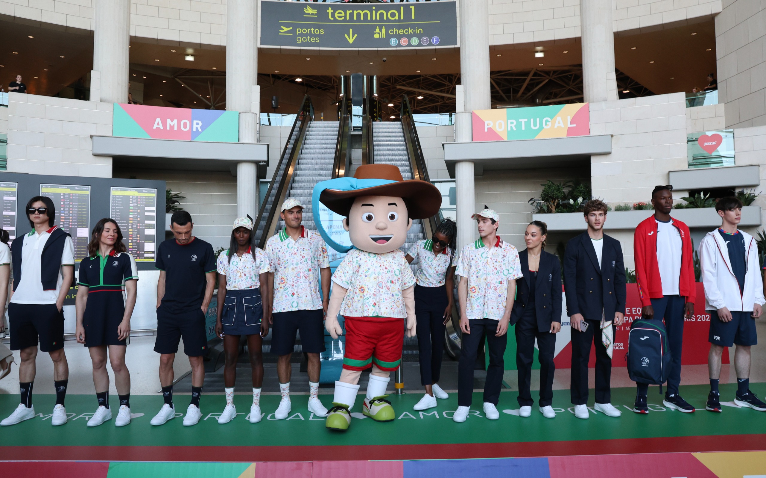 O Aeroporto Humberto Delgado, em Lisboa - uma das portas de saída dos atletas da Equipa Portugal rumo a Paris -, foi o local escolhido para o desfile em que participaram os atletas Filipa Martins (Ginástica), Bárbara Timo e Patrícia Sampaio (Judo), Angélica André (Natação), Eliana Bandeira, Rui Pinto, Susana Godinho, Pedro Buaró, Tiago Pereira e Evelise Veiga (Atletismo), Eduardo Marques (Vela) e Miguel Frazão (Esgrima), ao lado de manequins profissionais.