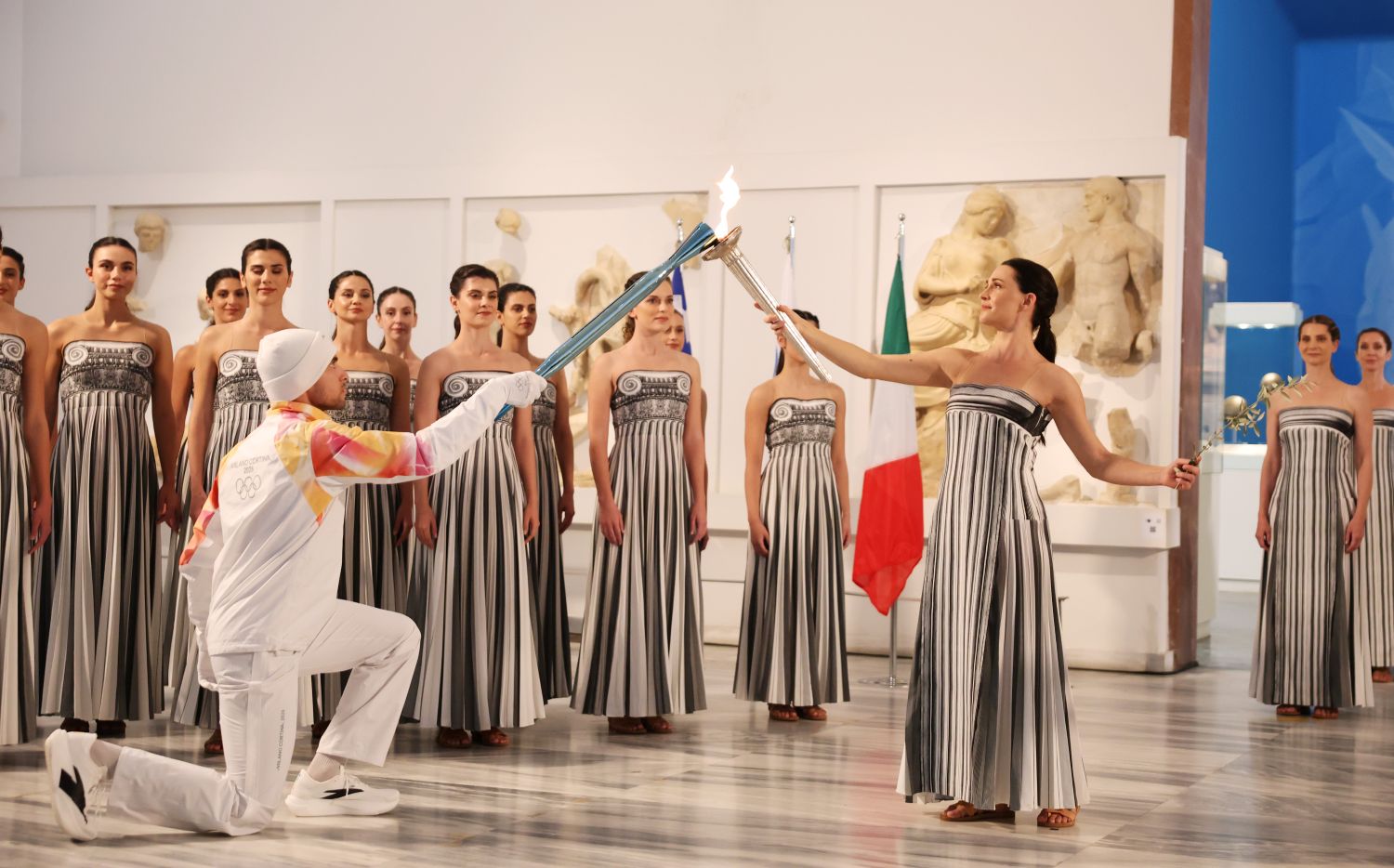 Devido ao mau tempo previsto para a Grécia, a Cerimónia foi dividida entre o Templo de Hera - num momento realizado em antecipação na segunda-feira - e o Museu Arqueológico de Olímpia, onde vários convidados assistiram esta manhã à finalização da cerimónia, entre os quais a Presidente do Comité Olímpico Internacional, Kirsty Coventry que destacou que este momento relembra o significado e importância dos Jogos Olímpicos: "É sobre juntarmos as pessoas numa competição pacífica, com amizade e respeito. Carregamos esta Chama do passado para o futuro. E é um futuro partilhado que queremos ver. É por isso que acreditamos firmemente na Trégua Olímpica. Estes Jogos realizam-se num momento crítico da nossa história. No mundo dividido em que hoje vivemos, os Jogos Olímpicos têm um lugar verdadeiramente simbólico - e é nosso dever e nossa responsabilidade garantir que os atletas de todo o mundo podem juntar-se em paz e inspirar os sonhos e esperanças dos que os acompanham em todo o mundo".