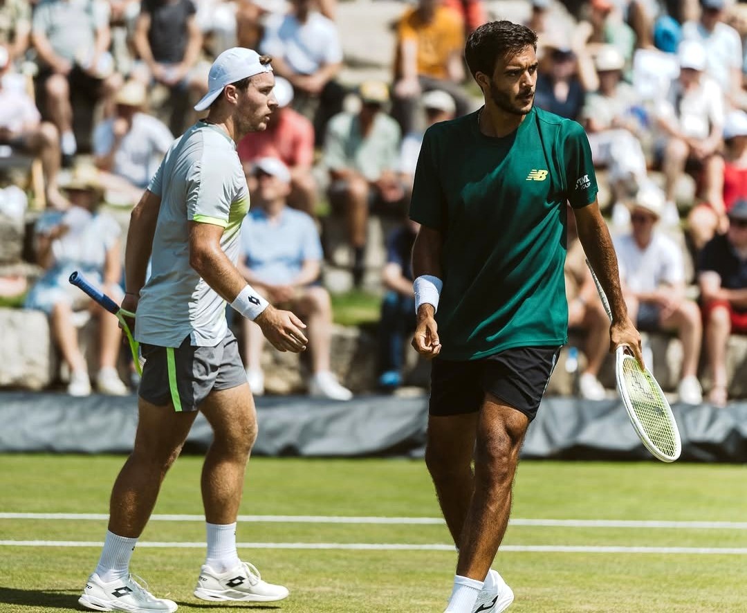 O tenista da Equipa Portugal (48.º do “ranking”) e Miedler (53.º) venceram em duas partidas, na ronda de 16 do torneio alemão disputado sobre relva, o par constituído pelo brasileiro João Fonseca (sem “ranking” de pares) e o grego Petros Tsitsipas (182.º), por 6-4, 6-4.