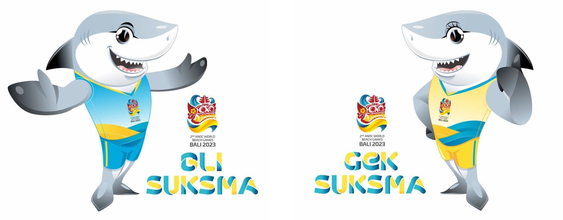 Gek Suksma (feminina) e Bli Suksma (masculino) foram relevadas como mascotes oficiais dos Jogos Mundiais de Praia Bali 2023.