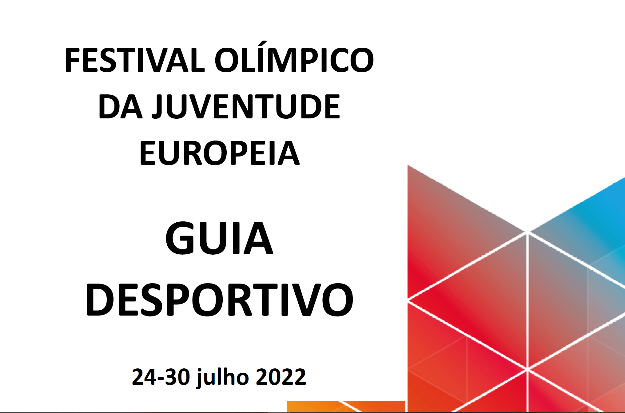 O Guia Desportivo da Equipa Portugal participante no Festival Olímpico da Juventude Europeia já está disponível, com todos os dados sobre os 63 atletas, de oito modalidades desportivas, que entrarão em competição amanhã, dia 25, até 30 de julho, na cidade eslovaca de Banská Bystrica.