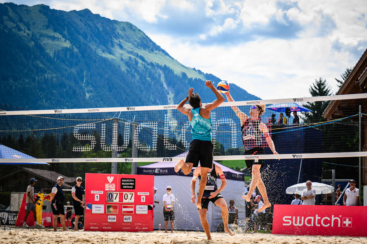 Hugo Campos e João Pedrosa foram esta quinta-feira eliminados no Elite 16 de Gstaad (Suíça), do Beach Pro Tour, de Voleibol de praia, com uma derrota (2-1) frente à dupla austríaca Christoph Dressler/Philipp Waller, na 2.ª jornada da fase de grupos.