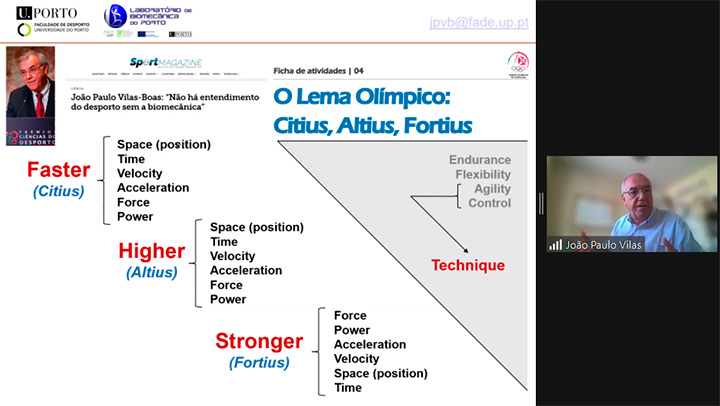 Vilas-Boas começou por afirmar que “não há entendimento do desporto sem a biomecânica”, justificando a sua tese ao longo da apresentação, com os exemplos e explicações que veio a apresentar.