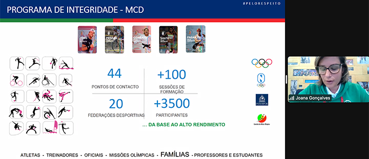 Hoje foi dia de mais uma sessão dirigida aos encarregados de educação, no âmbito do programa Performance Olímpica, desta vez com a temática da integridade e da “Prevenção da Manipulação de Competições”. Joana Gonçalves, gestora do programa de integridade do Comité Olímpico de Portugal (COP) apresentou a importância da manipulação de resultados no desporto atual e ainda o programa do COP que pretende sensibilizar, prevenir e educar para esta realidade.