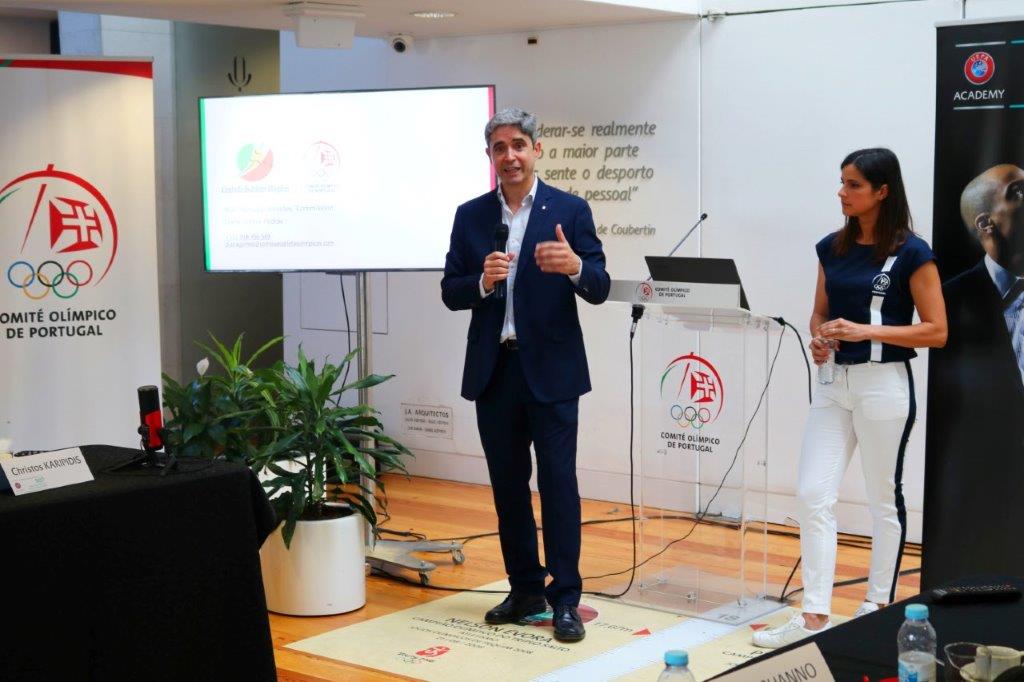 Na sessão 4 do Mestrado, com o título “The manager in action” - realizada em Lisboa desde 6 de junho até esta sexta-feira -, intervieram no módulo final o diretor desportivo do COP, Pedro Roque, e a presidente da Comissão de Atletas Olímpicos, Diana Gomes.