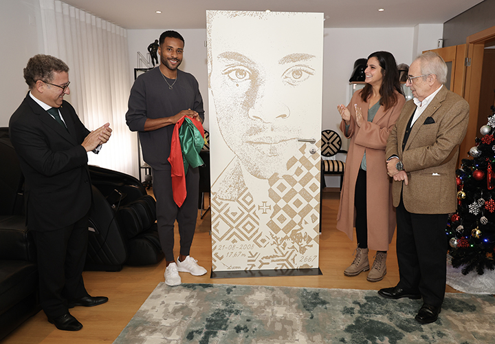 Depois de Carlos Lopes, foi a vez de Nelson Évora receber uma delegação do Comité Olímpico de Portugal (COP) para receber a obra artística de homenagem a cada um dos campeões Olímpicos de Portugal. “É um ato singelo, é um ato simples, mas cheio de significado”, disse José Manuel Constantino, Presidente do COP. “Queremos testemunhar-te o agradecimento do COP e o agradecimento de Portugal daquilo que é o teu valor desportivo, do que conseguiste em termos pessoais e sobretudo para o desporto nacional”.
