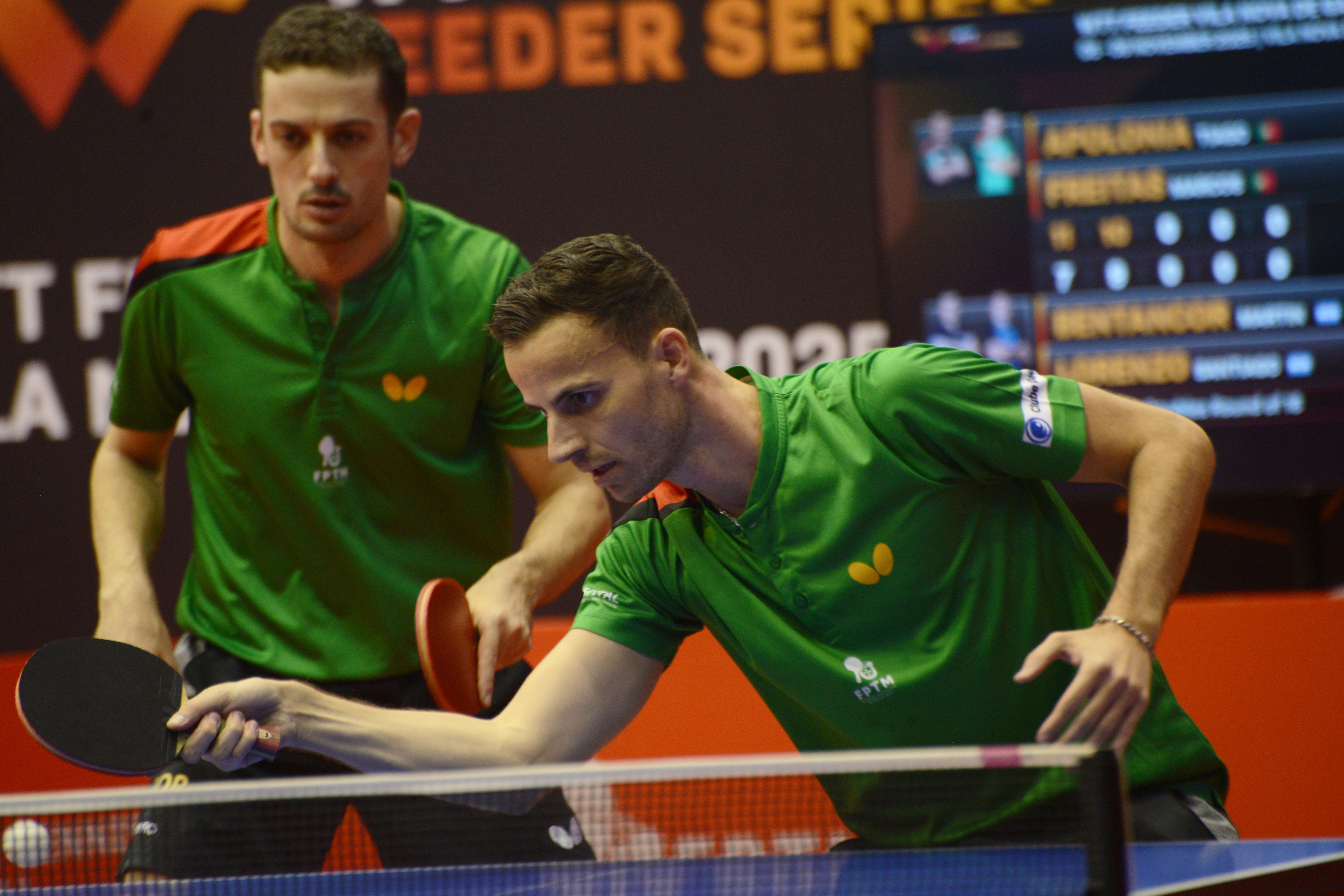 Em pares masculinos, a dupla Apolónia/Freitas assegurou a presença nos quartos-de-final, onde enfrentará os japoneses Hiromu Kobayashi e Fumiya Igarashi. Pelo caminho ficaram os argentinos Martin Bentancor e Santiago Lorenzo (11-7, 12-10, 11-8). Já Tiago Abiodun e Clement Laine cederam por 3-1 (11-9, 10-12, 11-8, 11-9), frente aos coreanos Daeseong/Minhyeok.