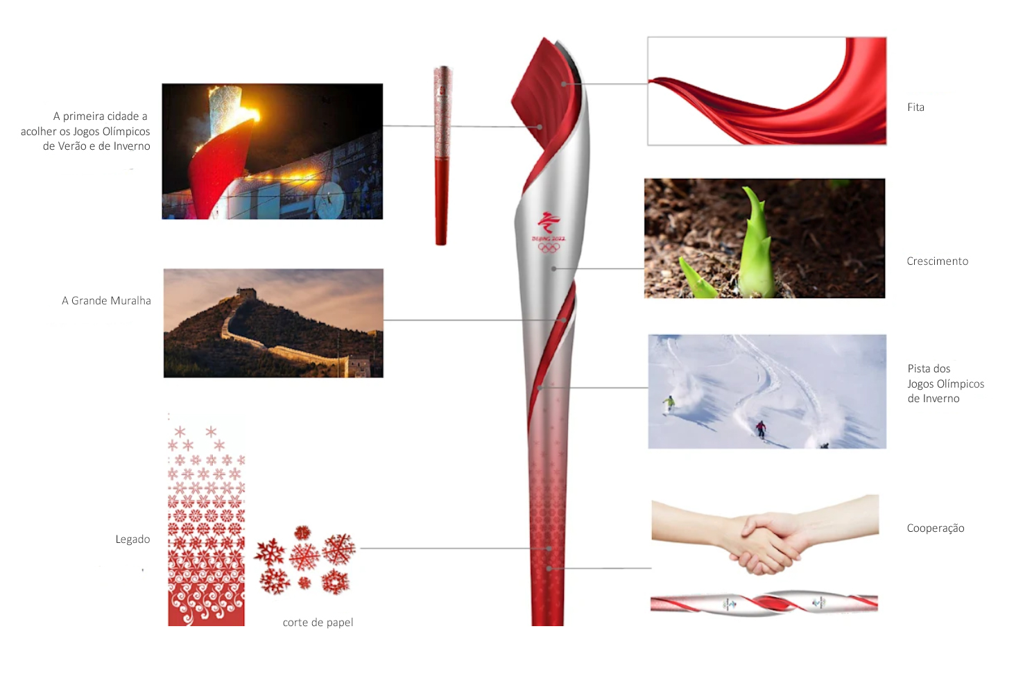 Sendo a primeira cidade do mundo a acolher tanto as edições de Verão como de Inverno dos Jogos Olímpicos, Pequim recorda as cores e forma da pira Olímpica de 2008 na tocha de 2022, adicionando um padrão de flocos de neve e espirais.
