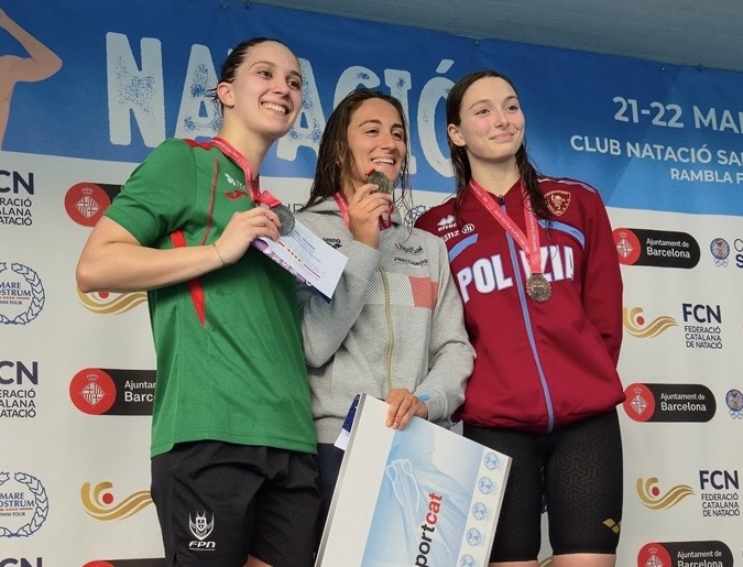 Arrancou hoje a etapa de Barcelona do circuito de Natação Mare Nostrum, com Francisca Martins a conquistar a medalha de prata na prova de 400 metros livres. A portuguesa concluiu em 4:08.58, atrás apenas da italiana Simona Quadarella (4:07.00). Esta marca valeu-lhe também um novo recorde nacional absoluto, melhorando o anterior registo que já lhe pertencia desde 2023. O bronze nesta distância foi entregue a Emma Giannelli, também proveniente de Itália (4:13.13). Francisca Martins tinha já competido na sessão matinal, mas nas eliminatórias de 100 metros livres, tendo terminado no 18.º lugar, como reserva para a final B desta distância.