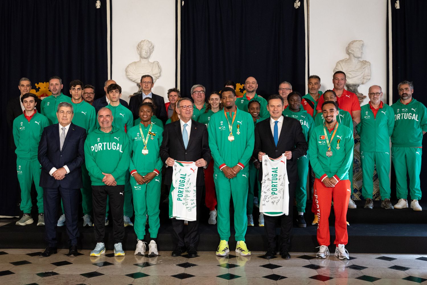 Na ocasião foram ainda impostas insígnias aos três atletas medalhados no Campeonato do Mundo de Atletismo em pista curta. Agate de Sousa, Gerson Baldé e Isaac Nader receberam o grau de Oficial da Ordem do Mérito.