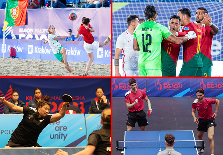 Só vitórias! A Equipa Portugal venceu a Polónia (6-2) na última jornada do grupo A do torneio de Futebol de Praia masculino e confirmou a passagem às meias-finais – nas quais vai encontrar a Suíça – como 1.º classificado, continuando assim na defesa da medalha de ouro conquistada há quatro anos, em Minsk 2019. Portugal entrou a perder o jogo desta quinta-feira, permitindo o golo à Suíça logo no pontapé de saída, mas depressa deu a volta ao resultado, com golos dos irmãos Martins, Bé e Leo. Os polacos empataram, só que a Seleção Nacional ainda marcou um golo por Rodrigo Pinhal, para finalizar o primeiro período em situação de vantagem (3-2). No segundo período, Leo Martins, de penálti, e Miguel Pintado fizeram mais dois golos, estabelecendo o resultado em 5-2. Miguel Pintado fez o único golo do terceiro período e fechou o resultado em 6-2 para Portugal.