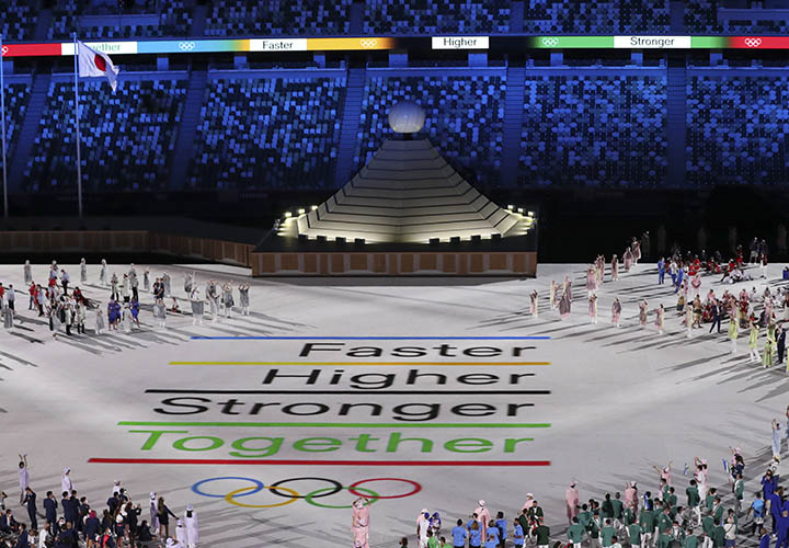 A Cerimónia continuou com os tradicionais momentos de discurso por Seiko Hashimoto, Presidente do Comité Organizador dos Jogos Olímpicos e Paralímpicos de Tóquio e de Thomas Bach, Presidente do Comité Olímpico Internacional, que voltou a afirmar o poder de união do desporto no dia em que foi apresentada a atualização do lema do Movimento Olímpico – “Mais rápido, Mais Alto, Mais Fortes – Juntos”. Naruito, Imperador do Japão declarou o início dos Jogos Olímpicos e a bandeira Olímpica foi hasteada em Tóquio. As pombas da paz e os 50 pictogramas abriram o caminho para o momento mais esperado da noite. A chama Olímpica chegou ao Estádio e foi a tenista Naomi Osaka que fez a última fase do percurso, acendendo a Pira Olímpica. Desenhada por Oki Sato, a Pira é inspirada no sol e abre-se como uma flor, cheia de vitalidade e esperança.