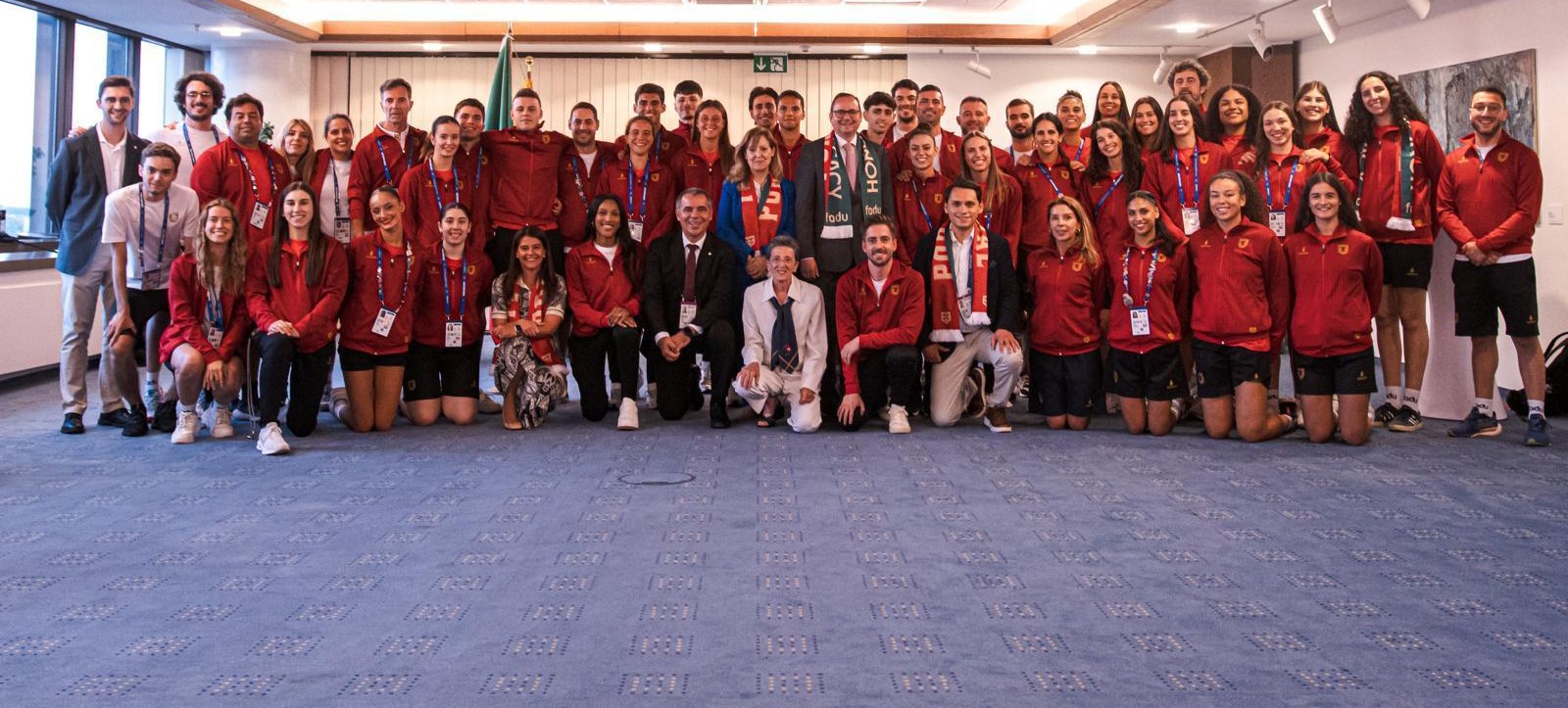 A equipa nacional participante nos Jogos Mundiais Universitários de verão Rhine-Ruhr 2025, na Alemanha, foi recebida pelo Município de Essen, numa cerimónia que contou com a presença da embaixadora de Portugal, Madalena Fischer, do secretário de Estado do Desporto, Pedro Dias, da campeã olímpica da maratona e membro da Comissão Executiva do Comité Olímpico de Portugal, Rosa Mota, da olímpica Patrícia Mamona, chefe da missão, do presidente da Federação Académica de Desporto Universitário, Ricardo Nora, e do presidente do Município de Essen, Thomas Kufen.