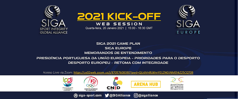 A Sport Integrity Global Alliance (SIGA) divulga na quarta-feira, dia 20 de janeiro, os objetivos estratégicos para 2021, com destaque para a constituição da SIGA EUROPE, que assume a sua sede em Lisboa.