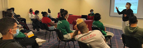 A sessão foi apoiada por exemplos práticos de situações que podem acontecer na modalidade do Judo e a mobilização dos judocas para a partilha foi conseguida com sucesso.